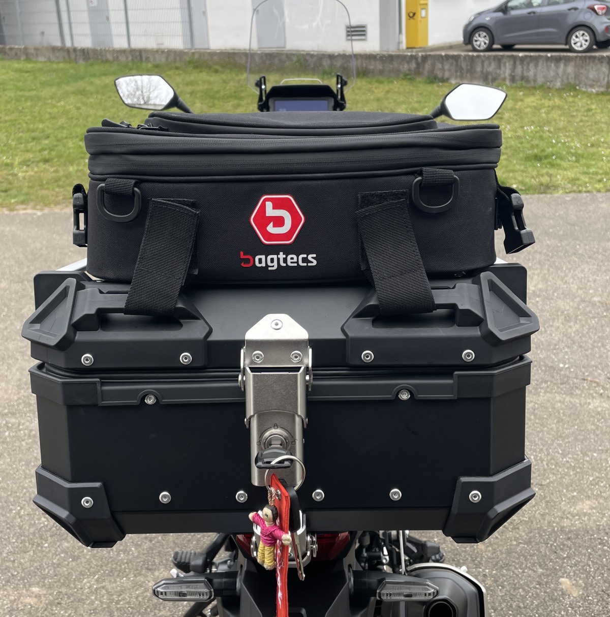 Für die Fahrten ins Büro und für Tagestouren will ich auf die großen Koffer verzichten. Meine derzeit montierte uralte kleine Louis-Hecktasche ist hierfür aber zu klein.
