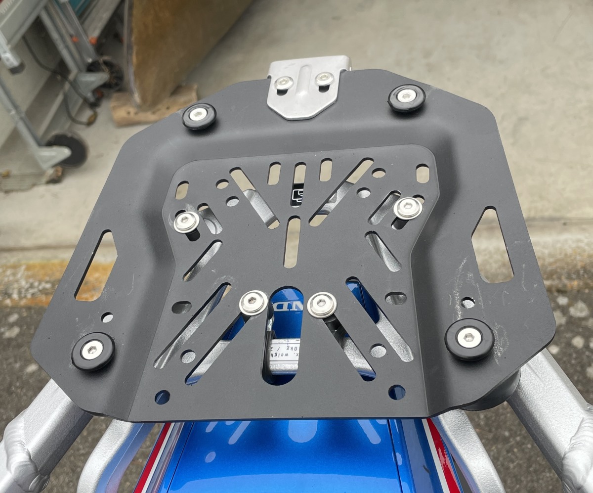 Die TopBox wird mit einer Universal-Halteplatte geliefert, bei der ich nicht genau abschätzen konnte, ob die Installation an Honda-Gepäckbrücke ohne Probleme möglich sein würde. Eine zusätzliche Gepäckplatte von Ziegler oder SW-Motech wurde schon mal im Hinterkopf eingeplant.