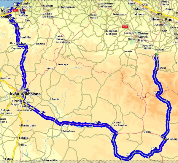 Vorbei an zahlreichen Stauseen weiter Richtung Süden und dann am Südrand der Pyrenäen nach Westen über Pamplona wieder zurück ins regnerische Frankreich. Ziel: das schöne Küstenstädtchen Saint-Jean-de-Luz an der Atlantikküste.