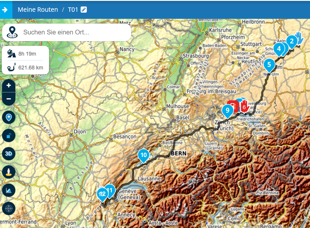 Mein Weg führt mich über Oberschwaben an den Bodensee. Von dort aus nehme ich die Fähre nach Konstanz, um schnell in die Schweiz zu kommen. Immerhin habe ich heute über 600 Kilometer vor mir!