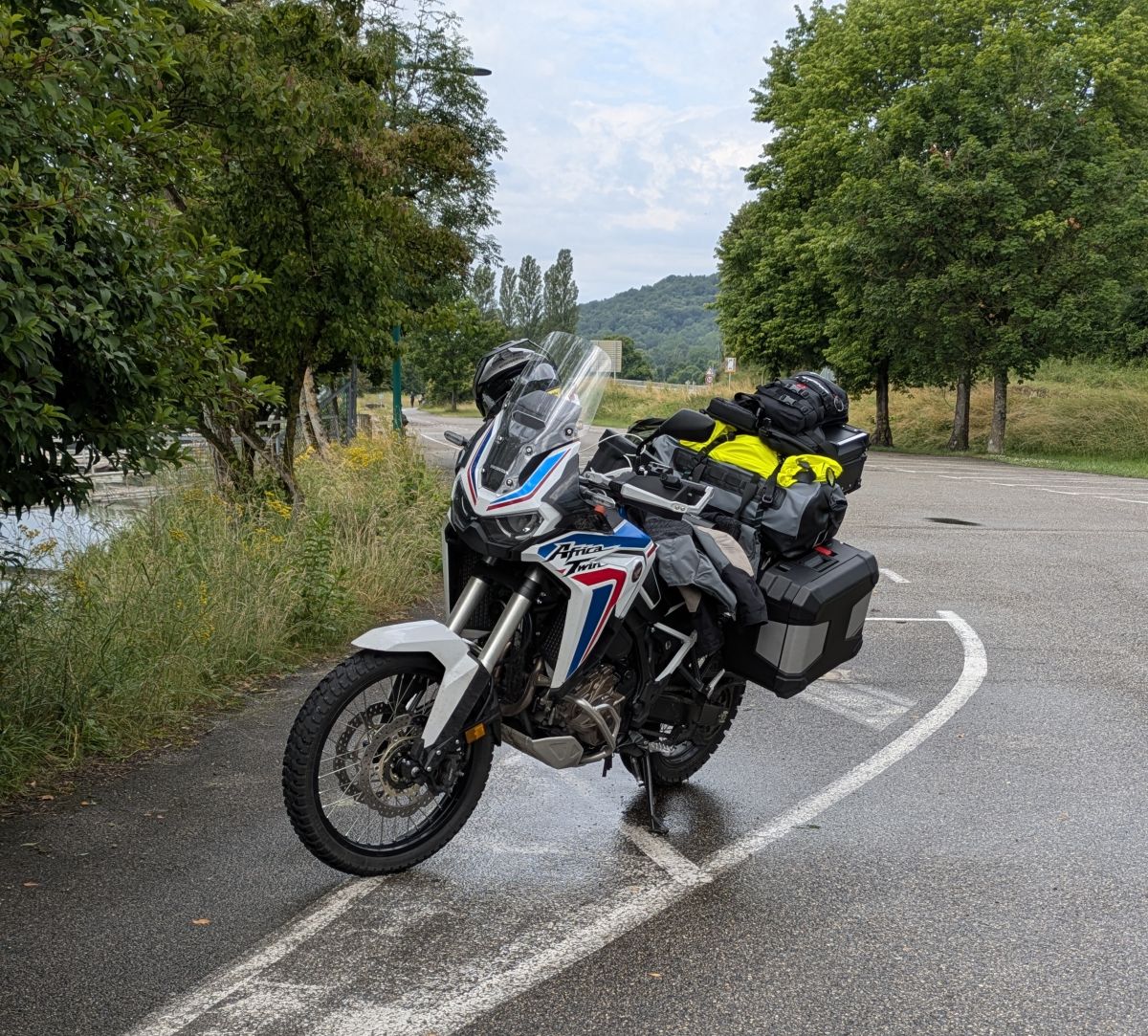 Wieder Regen. Nicht wild, aber präsent. Der Himmel hängt tief, als wolle er mich noch ein wenig aufhalten. Aber ich fahre trotzdem los – langsamer, wacher. Die kleinen Wege durch die Auvergne-Rhône-Alpes sind schmal und leer. Manchmal bin ich nicht sicher, ob ich noch auf einer Straße bin oder schon auf einem breiteren Wanderweg. Aber das ist egal. Es fühlt sich richtig an.