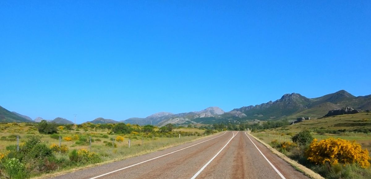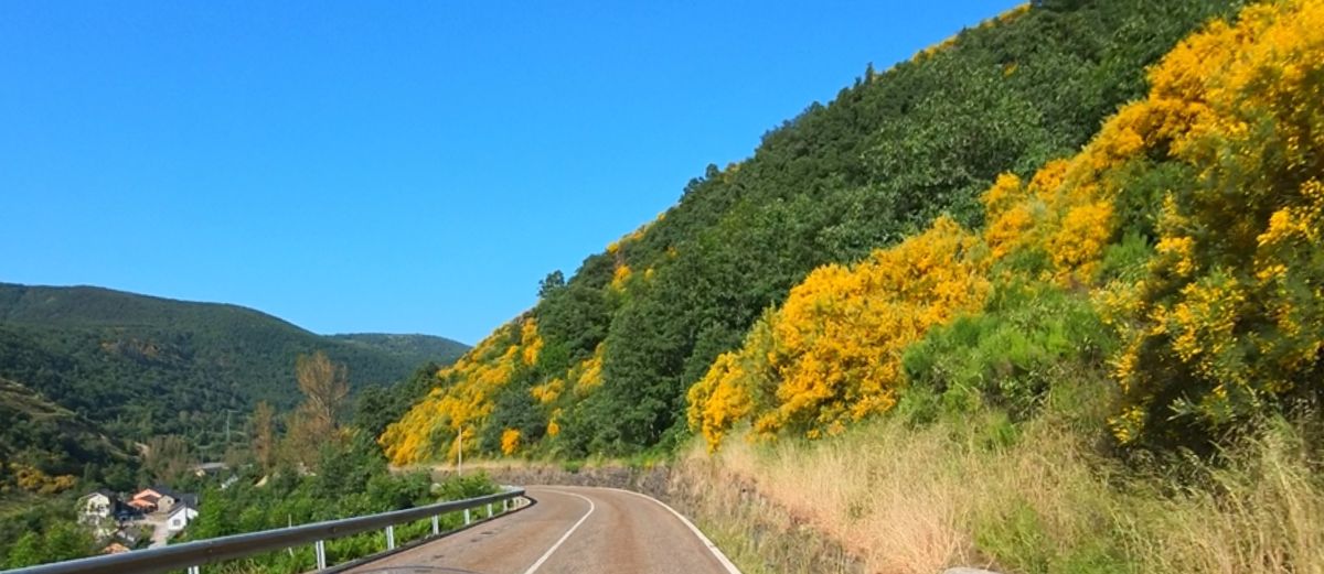 Zuerst entlang des Rio Luna, durch stille Täler mit karger Schönheit. Dann folge ich dem Rio Sil, der sich durch Kastilien gräbt, vorbei an Toreno. Dort wechsle ich kurz auf die Autovía, um zügig nach Ponferrada zu kommen – ein kurzer Sprung in die Stadt mit ihrer Templerburg, dann weiter westwärts.