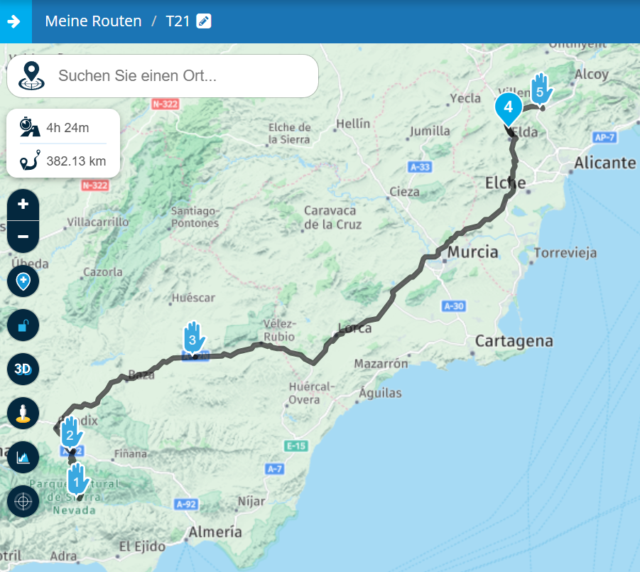 Ein langer Fahrtag liegt hinter mir – und was für einer. Es ging quer durch die Sierra Nevada, dann weiter über Baza, Totana und Murcia, vorbei an Alicante bis nach Castalla. Die AfricaTwin lief zuverlässig, aber mein Körper war heute das Limit.