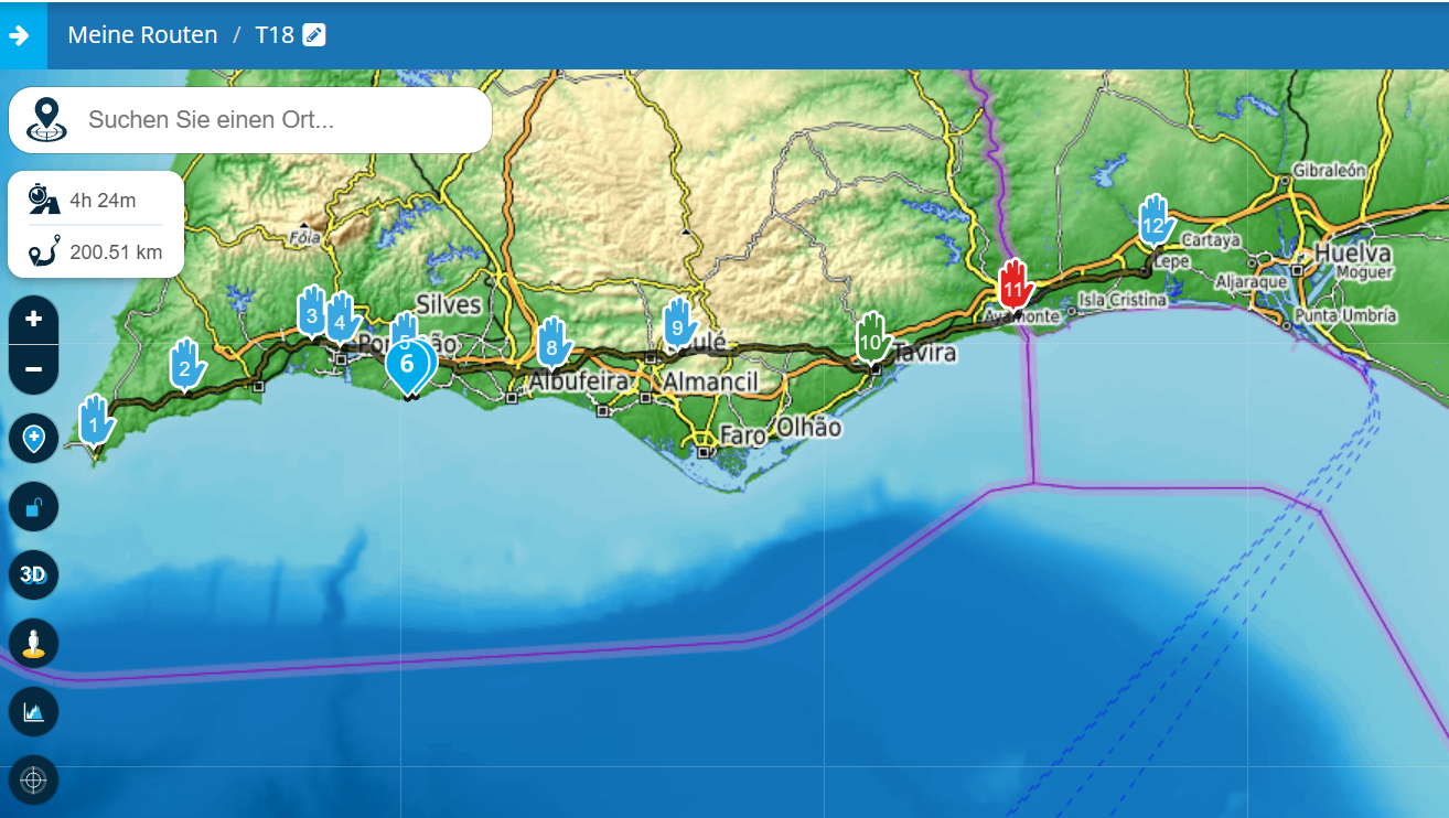 Heute hieß es Abschied nehmen von Portugal – zumindest vorerst. Ich bin zurück in Spanien. Der Weg dorthin: entspannt, mit vielen Stopps entlang der Steilküste. Besonders lohnend: ein Rundgang durch das charmante Tavira – weiße Häuser, Brücken über den Fluss, gemütliche Cafés.
